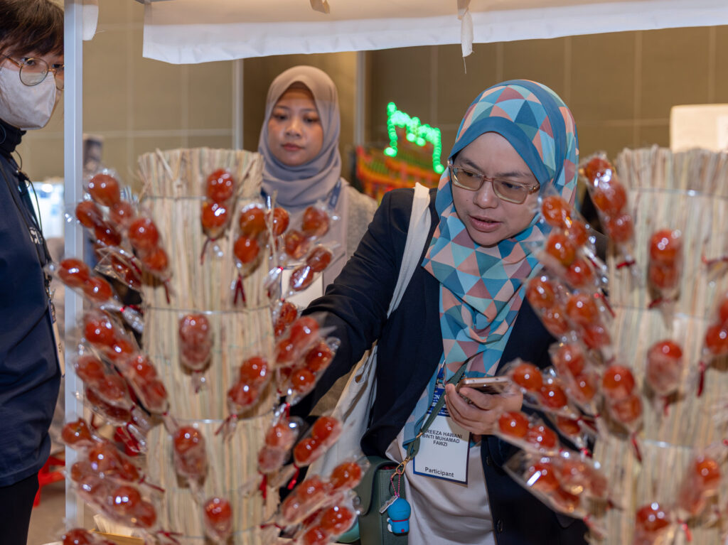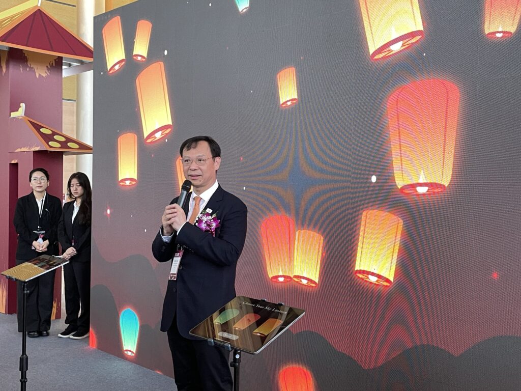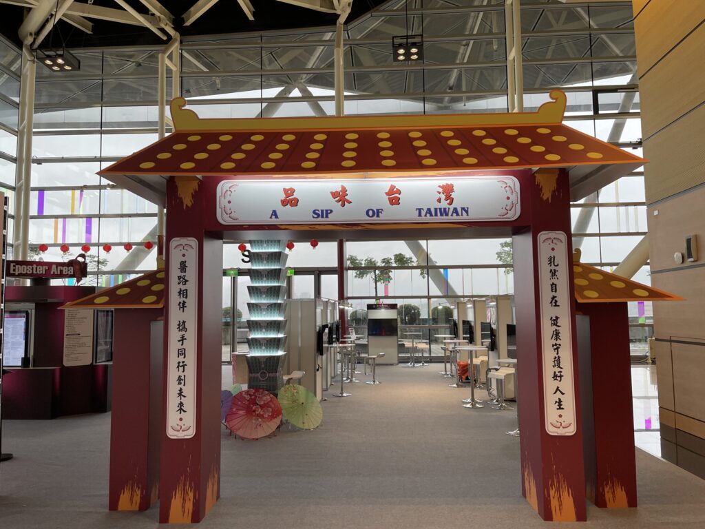 台灣主題區融入擲筊、許願牆、野臺戲與布袋戲等文化元素,呈現台灣民間信仰與表演藝術的多元樣貌;同時結合夜市餐車文化,提供車輪餅、花生捲冰淇淋、糖葫蘆等台灣經典小吃,讓來自各國的與會者在品嚐美食的同時,感受台灣文化的溫度與節奏。