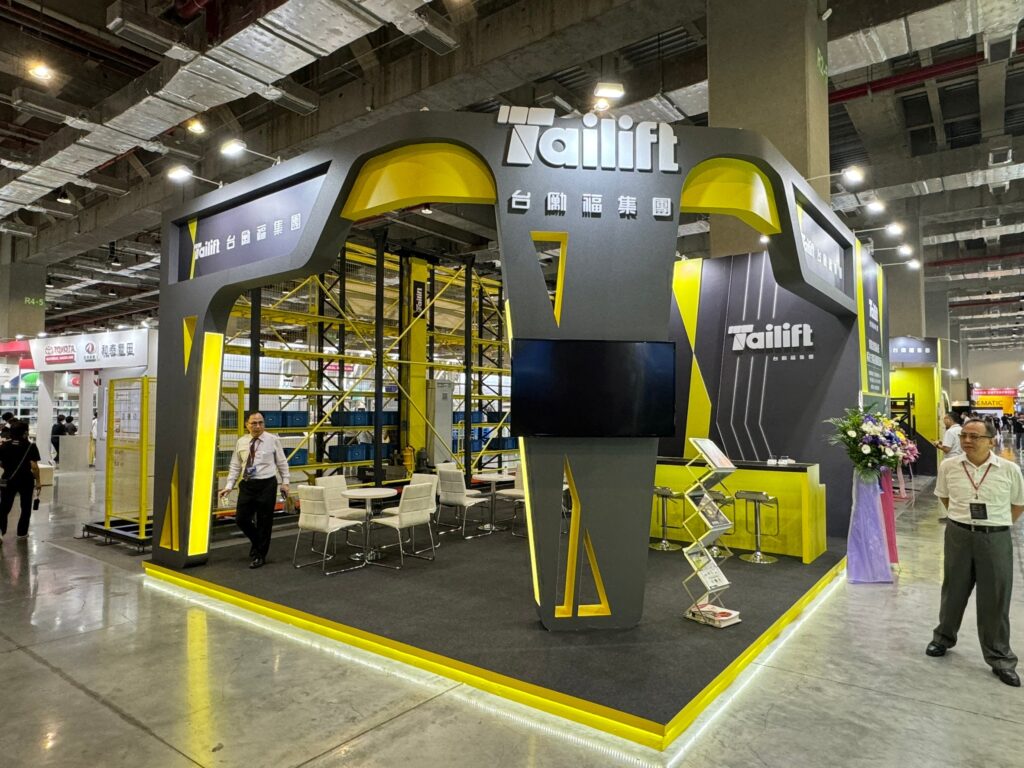 台勵福國際物流展的攤位設計以廠商標誌中的『T』為主要造型主軸,搭配檸檬黃與深灰色,形成層次分明的色彩搭配。在動線規劃上,我們以倉儲機械取貨生產線為基礎,設計了具有穿透感的攤位結構。此設計不僅能夠展示廠商產品的機械運作過程,還能讓參觀客戶清晰地一覽無遺,提升整體展示效果。