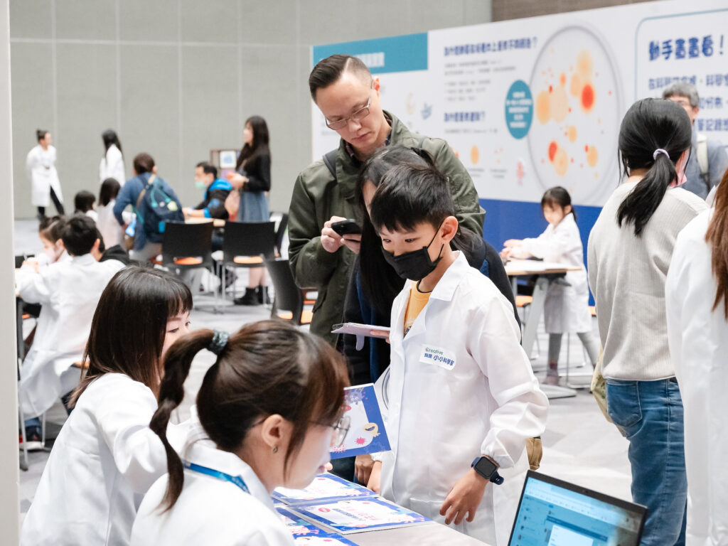 現場不僅設立了沉浸式科普展示區,將艱澀的科學知識轉化成更直觀的互動體驗,此次規劃了兩種互動體驗區,聯手多所大學團隊,規劃四大主題關卡,鼓勵親子攜手參加的科普互動區(生活篇)。除了闖關活動,也規劃了科普互動區(實驗篇),讓小朋友化身為小小科學家,在遊戲與感官體驗中,認識相關知識,使得微生物科學真正走入大眾的生活。